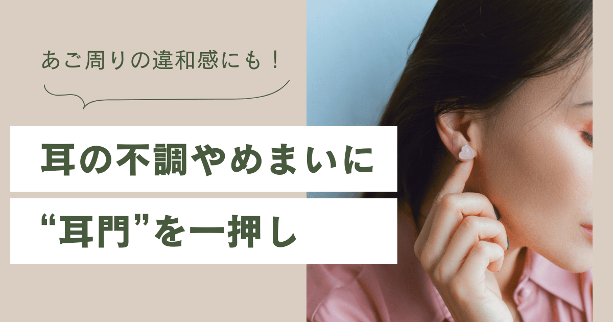 耳門は、耳の前、顔の側面にあるツボで、音の聞こえや圧迫感、耳の内側の不調をやわらげる作用があります。