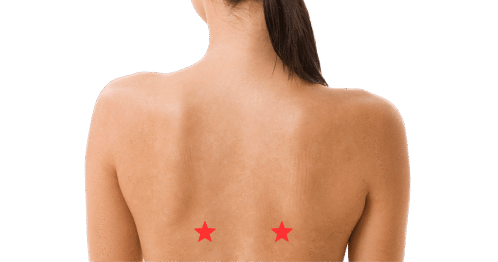 - 背骨の中央から左右に指2本分外側