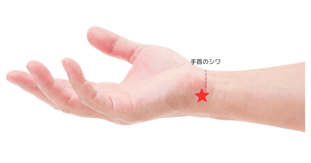 - 手首の内側、小指側の端(手首の横ジワ上)