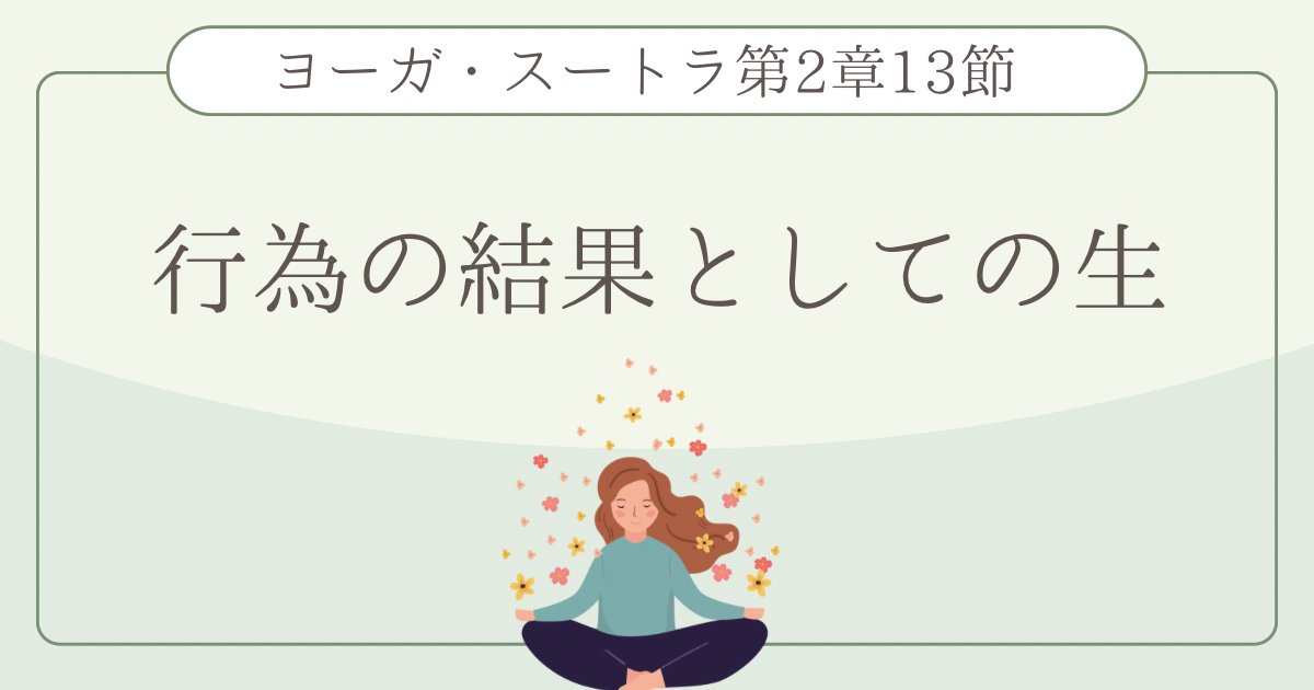 ヨーガ・スートラ第2章13節では、前の節で語られた「カルマの種(潜在的な印象)」がどのような結果を生み出すのかが示されています。パタンジャリは、カルマの種が存在するかぎり、それは生(出生・生存のあり方)と経験(苦楽の体験)という結果をもたらすと説いています。