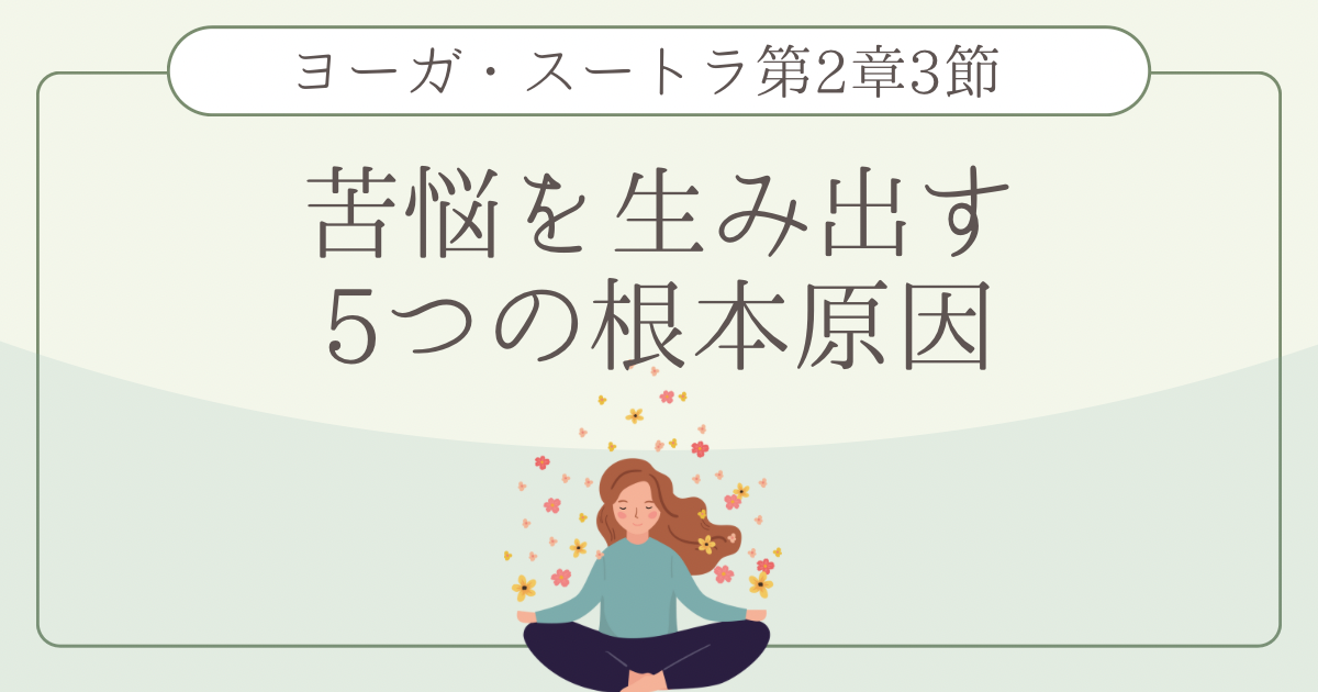 ヨーガ・スートラ第2章3節では、私たちの心を苦しめる根本原因として「五つの煩悩(クレーシャ)」が挙げられています。パタンジャリは、日々の悩みや迷いは偶然に起こるのではなく、心の深いところにあるこの五つの性質から生まれてくると説きます。