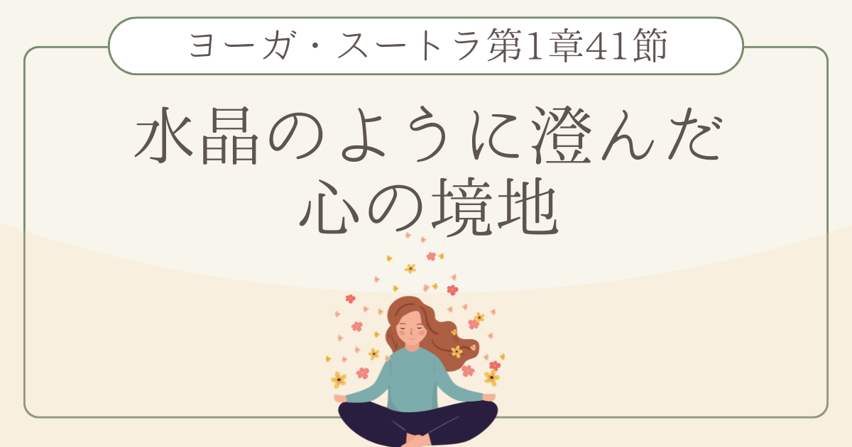 ヨーガ・スートラ第1章41節は、心がよく調ってくるとどんな状態になるのかを、水晶のたとえを使って説明している節です。現代風に言うと、心が澄んでくると「物ごとや人、自分自身を、そのままの姿で見られるようになる」ということだと思います。